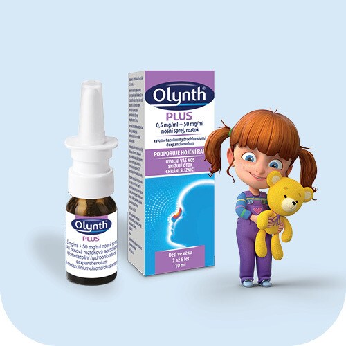 Když vaše dítě trápí rýma a nachlazení, vyzkoušejte Olynth® Plus pro podporu hojení poraněné nosní sliznice. Nosní sprej Olynth® Plus s dexpanthenolem nejen uvolňuje ucpaný nos, ale také podporuje hojení poraněné nosní sliznice a chrání ji. Neobsahuje konzervační látky. Rychlá a účinná úleva od rýmy a ucpaného nosu již od 5 minut.