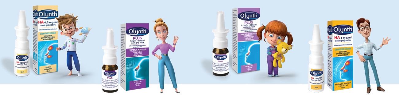 - Olynth HA navíc jako jediný obsahuje kyselinu hyaluronovou, která zvlhčuje nosní sliznici.