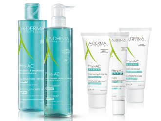 - A-DERMA PHYS-AC – Obnovuje rovnováhu a působí proti nedokonalostem pleti se sklonem k akné.
