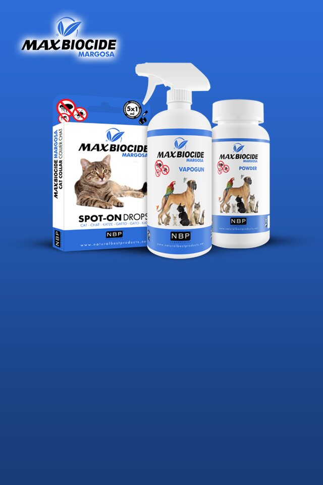 Max Biocide Margosa Lotion spray je antiparazitní sprej pro psy, kočky, králíky, fretky a podobně. Také k ošetření pelíšků a prostředí, kde se zvíře pohybuje.