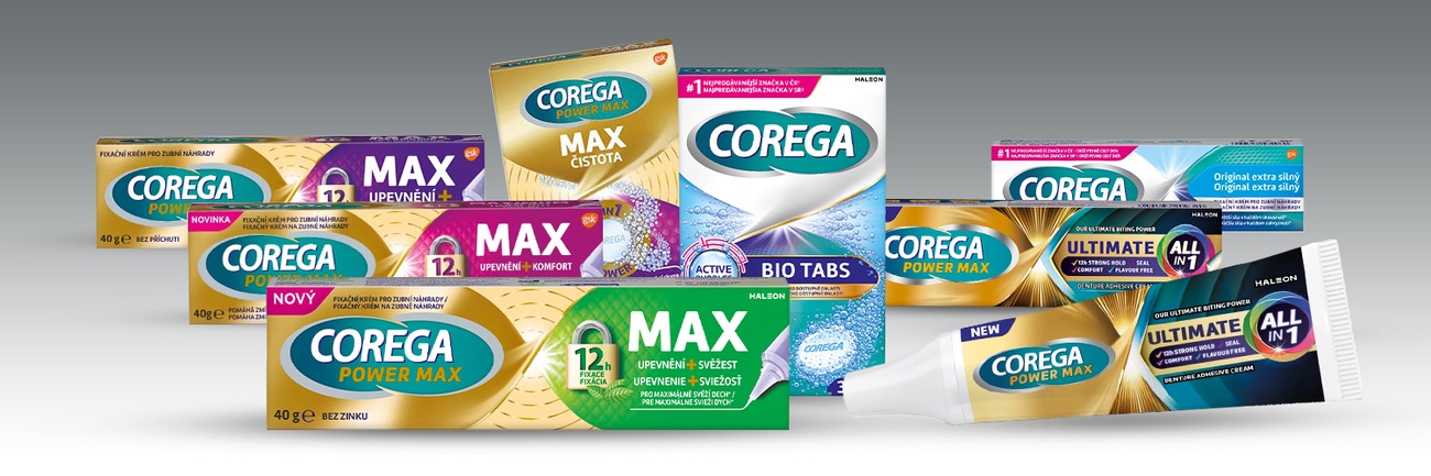 Corega Power Max je fixační krém bez příchuti pro až 12hodinovou pevnou fixaci, který navíc pomáhá bránit pronikání a ulpívání zbytků jídla pod náhradou.