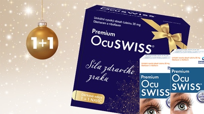 Komplexní výživa pro vaše oči s vysokým obsahem luteinu - Premium Ocuswiss 60 kapslí. Nyní ve vánoční limitované edici 1+1 ZDARMA s exkluzivním obalem.