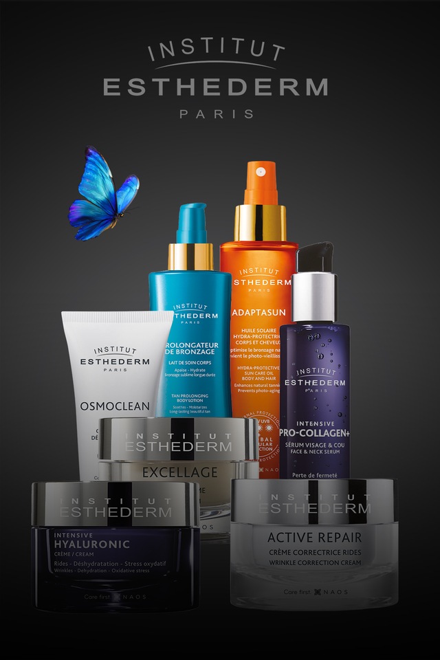 Sada cestovních miniatur se základní rutinou značky Institut Esthederm. Tato komplexní péče o pleť obsahuje 7 produktů od čištění přes séra až po ošetřující krémy.