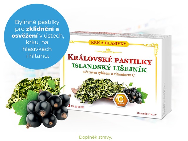 Bylinné pastilky s výtažkem černého rybízu, extraktem z islandského lišejníku a vitaminem C.