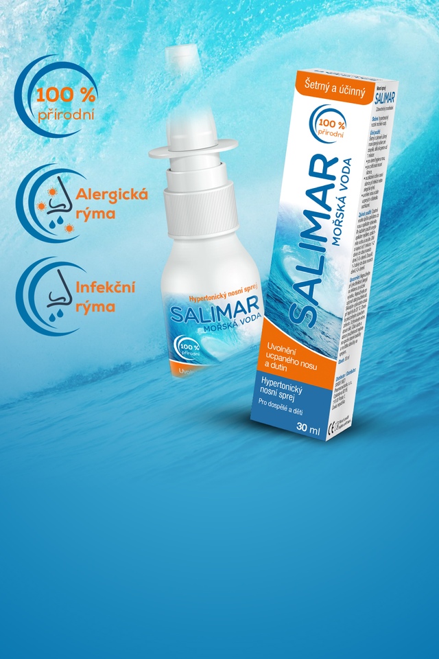 Salimar Hypertonická mořská voda 30 ml - šetrná a zároveň účinná při rýmě a nachlazení v MEGA AKCI 1+1 ZDARMA.
