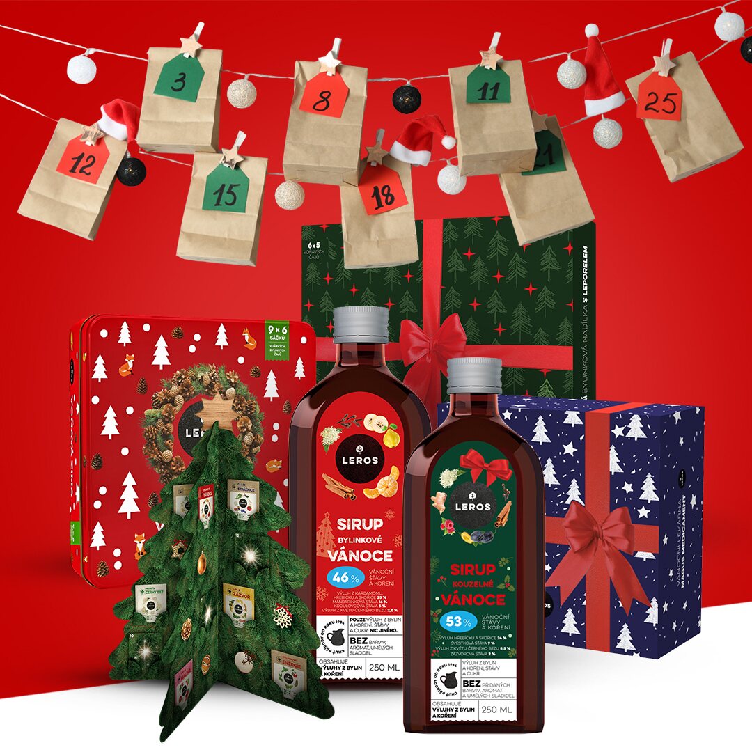 Leros dárková sada bylinkové Vánoce, která obsahuje dva druhy lahodných bylinných čajů a sirup.