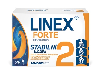 Linex® Forte je doplněk stravy, obsahuje bakterie mléčného kvašení, min. 1× 109 Lactobacillus acidophilus a min. 1× 109 Bifidobacterium animalis subsp. lactis. Doplňky stravy nejsou určené pro náhradu pestré stravy.
