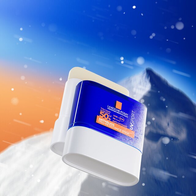 Tyčinka SPF 50+ pro ochranu citlivých partií před sluncem s hutnou voskovou texturou.
