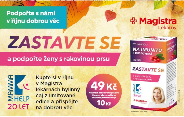 Magistra lékárny se spolu s lékárnami Pharmacentrum zapojili do charitativní akce „růžový říjen“. Ten je celosvětovým měsícem boje proti rakovině prsu. Exkluzivně v lékárnách Magistra a Pharmacentrum se prodávala v rámci akce Zastavte se limitovaná edice speciálního „růžové“ čaje na imunitu.