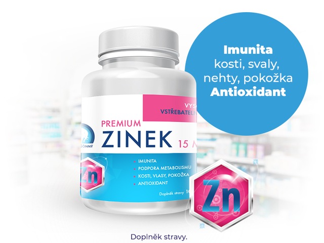 Doplněk stravy s vysokou dávkou zinku k udržení normálního stavu vlasů, nehtů a pokožky.