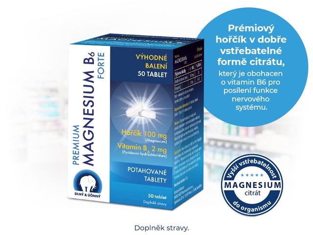 Premium Magnesium B6 Forte 50 tablet pro správnou funkci nervového systému v MEGA AKCI 1+1 ZDARMA