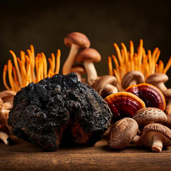 Všechny houby jsou bohaté zejména na betaglukany, ale obsahují také aminokyseliny, nukleotidy a množství vitaminů a minerálů. V lékárně naleznete doplňky stravy s obsahem jednotlivých složek, ale také různé kombinace zaměřené především na podporu obranyschopnosti organismu (Imunit Hlíva ústřičná, Terezia Reishi BIO, Terezia Houbové kvarteto s reishi, Terezia Čaga+Reishi a Rakytník).