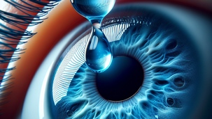 Oční kapky pro zvlhčení a podporu hojení poškozeného povrchu oka, např. v důsledku suchého oka po operačních zákrocích.