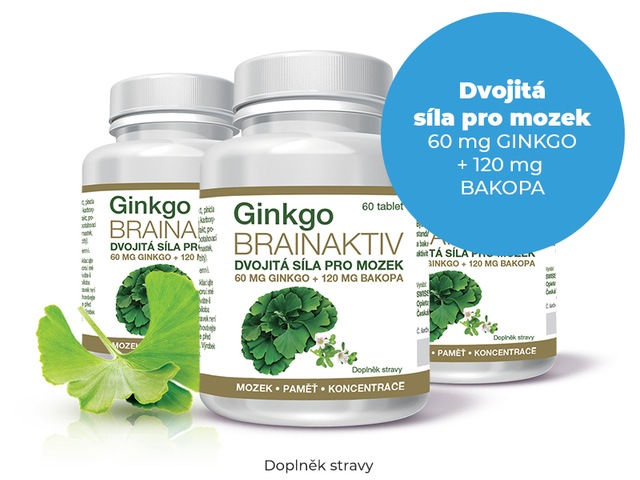 Přípravek s vysokým obsahem standardizovaných extraktů ginkgo biloba a bakopy drobnolisté na podporu mozkové aktivity, paměti a kognitivních funkcí.