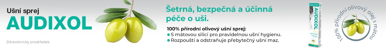 Ušní sprej, jedinou složkou je olivový olej zpracovaný podle farmaceutických standardů.
