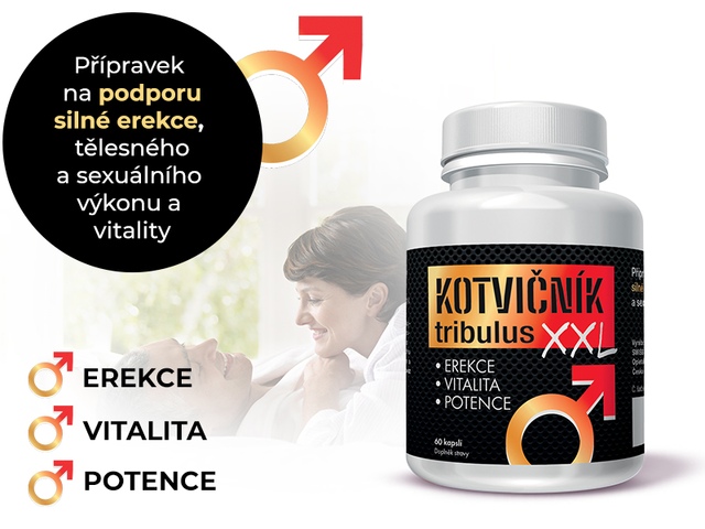 Přípravek na podporu silné erekce, tělesného a sexuálního výkonu a vitality, s vysokým obsahem 350 mg standardizovaného extraktu kotvičníku zemního s min. 90 % saponinů