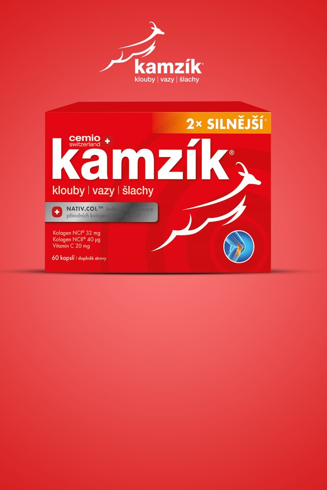 Cemio Kamzík obsahuje kombinaci dvou typů čistého kolagenu pro klouby, vazy, šlachy i kloubní chrupavky a vitaminu C, který je důležitý pro správnou tvorbu kolagenu.