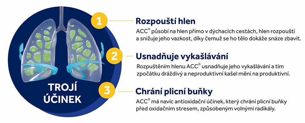 Lék k vnitřnímu užití. Obsahuje acetylcystein.