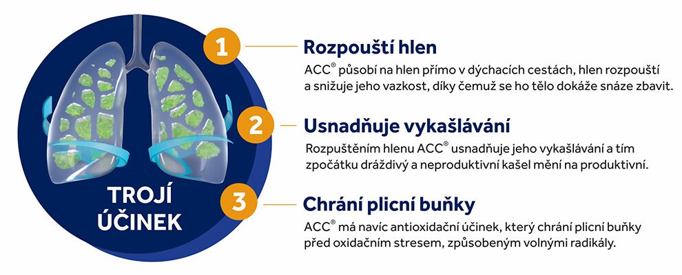 Lék k vnitřnímu užití. Obsahuje acetylcystein. Objem obsahu 100 ml.