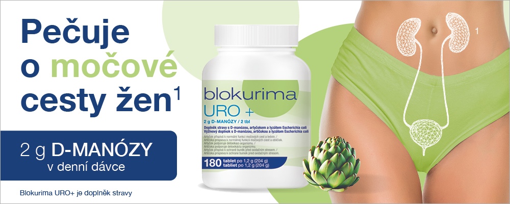 Blokurima® URO + pro pravidelnou a dlouhodobou péči o Vaše močové cesty1. Tablety obsahují v denní dávce kombinaci 2 g d‑manózy, výtažku z artyčoku a lyzátu bakterie E.coli. Tablety Blokurima® URO+ jsou vhodné zejména pro dlouhodobé užívání.
