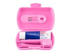Tato cestovní sada pro děti od šesti do dvanácti let umožňuje pohodlnou péči o zuby a dásně doma i na cestách.