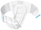Kalhotky rozbalte, podélně přehněte na půl (absorpční vrstvou dovnitř) a jemně promačkejte, chytněte boční elastické pásky a upevněte vpředu, narovnejte okraje, uhlaďte a ověřte správnost nasazení jediným pohledem. Kalhotky totiž mají na zadní části naznačený střed, který musí být v linii s páteří. Vyměňujte maximálně po 8 hodinách.