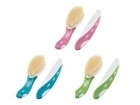 Dětský kartáč a hřebínek na vlasy NUK je vyroben z extra jemných přírodních štětin pro tu nejlepší péči o jemné vlásky miminek. Kartáč i hřebínek jsou vybaveny speciální designovou rukojetí pro pevné uchopení a zaoblené zuby hřebenu chrání jemnou dětskou pokožku.