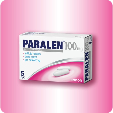 Lék k rektálnímu podání. Obsahuje paracetamol.