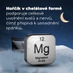 • Hořčík v chelátové formě bysglicinátu hořečnatého patří mezi nejlépe vstřebatelné formy hořčíku s minimální gastrointestinální zátěží. Přispívá k normální činnosti nervového systému, svalové relaxaci a snížení únavy. Podporuje celkové uvolnění svalů a nervů, čímž přispívá k usnadnění spánku.