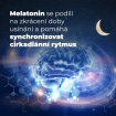 • Melatonin se podílí na zkrácení doby usínání a pomáhá synchronizovat cirkadiánní rytmus. V nízké dávce je vhodný i pro dlouhodobé užívání bez rizika nadměrného útlumu. Vhodné zejména u lidí s poruchami spánku nebo u těch, kteří často cestují a mají potíže s jet lagem.