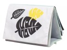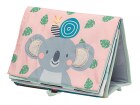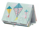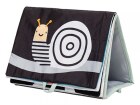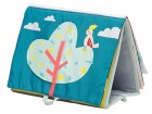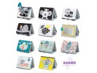 Textilní knížka s otáčecími šustícími stránkami ve tvaru stolního kalendáře nabízí dva typy obrázků pro dvě vývojová stádia dítěte.
