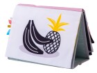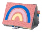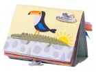 Textilní knížka s otáčecími šustícími stránkami ve tvaru stolního kalendáře nabízí dva typy obrázků pro dvě vývojová stádia dítěte.
