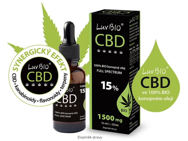 LuvBIO CBD 15 % BIO konopný olej 10 ml