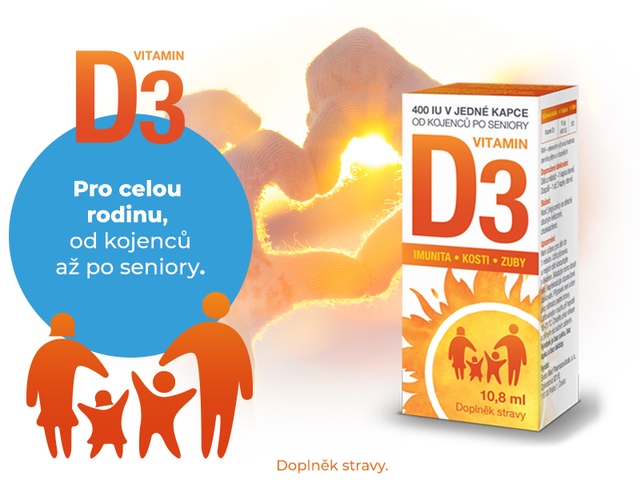 Kapky s obsahem vitaminu D3, který je potřebný pro normální růst a vývoj kostí a pro zdravou imunitu. Ideální pro celou Vaši rodinu.