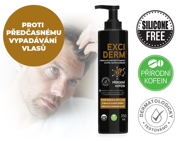 Kofeinový šampon s obsahem panthenolu, lopuchu a kopřivy.