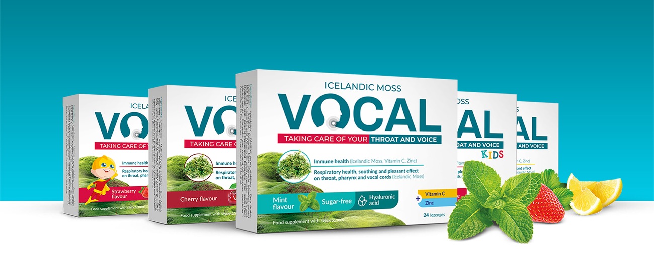 VOCAL pastilky obsahují islandský lišejník, vitamín C a směs zinku. Lišejník islandský (Cetraria islandica) zmírňuje podráždění krku a hltanu . Má uklidňující a příjemný účinek na krk, hltan a hlasivky. Chrání sliznici úst a krku. Vitamin C a zinek přispívají ke správné funkci imunitního systému a chrání buňky před oxidativním stresem.