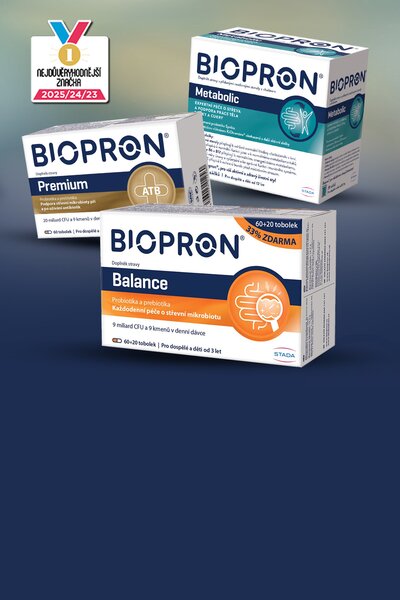 Komplex 10 probiotických kmenů v denní dávce 24 miliard CFU, prebiotických fruktooligosacharidů (FOS) a prebiotika inulinu. Nyní v akci 1+1 ZDARMA.