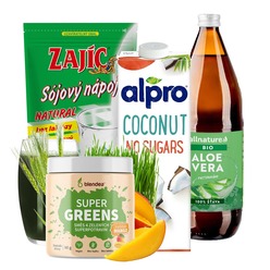✔️ Rostlinné alternativy a zdravé nápoje – smoothie, šťávy, rostlinná mléka, proteinové drinky či čaje.